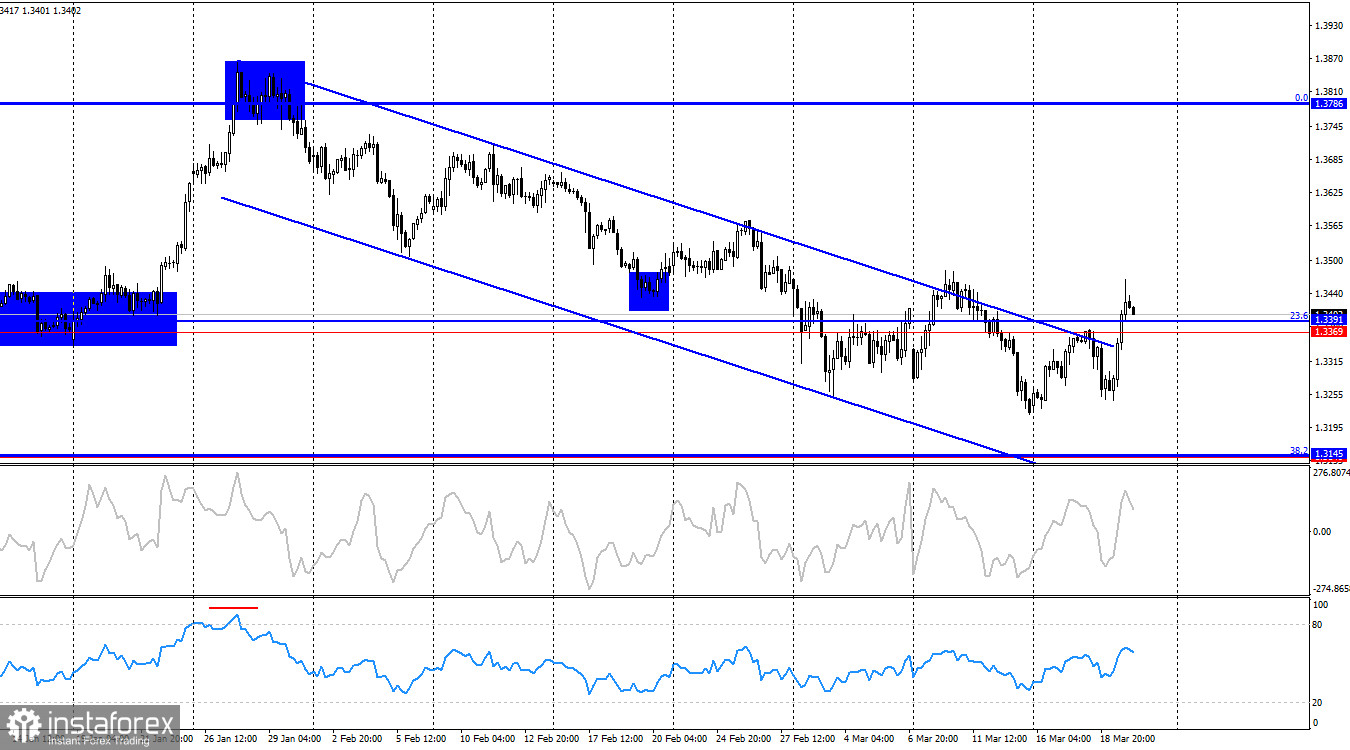 Ситуация с волнами вновь начала меняться на «бычью». Последняя завершенная волна вниз не пробила предыдущий лоу, а последняя волна вверх пробила предыдущий пик. Информационный фон для британца был слаб в последние месяцы, а геополитика обеспечивала медведям полное преимущество на рынке. Война в Иране остается главной причиной роста американской валюты, но на этой неделе ситуация все же начала разворачиваться в их пользу.